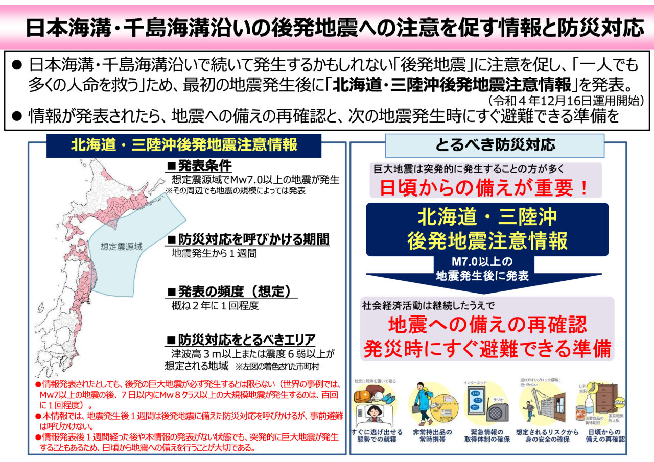 北海道・三陸沖後発地震注意報は以下のURLから確認できます。