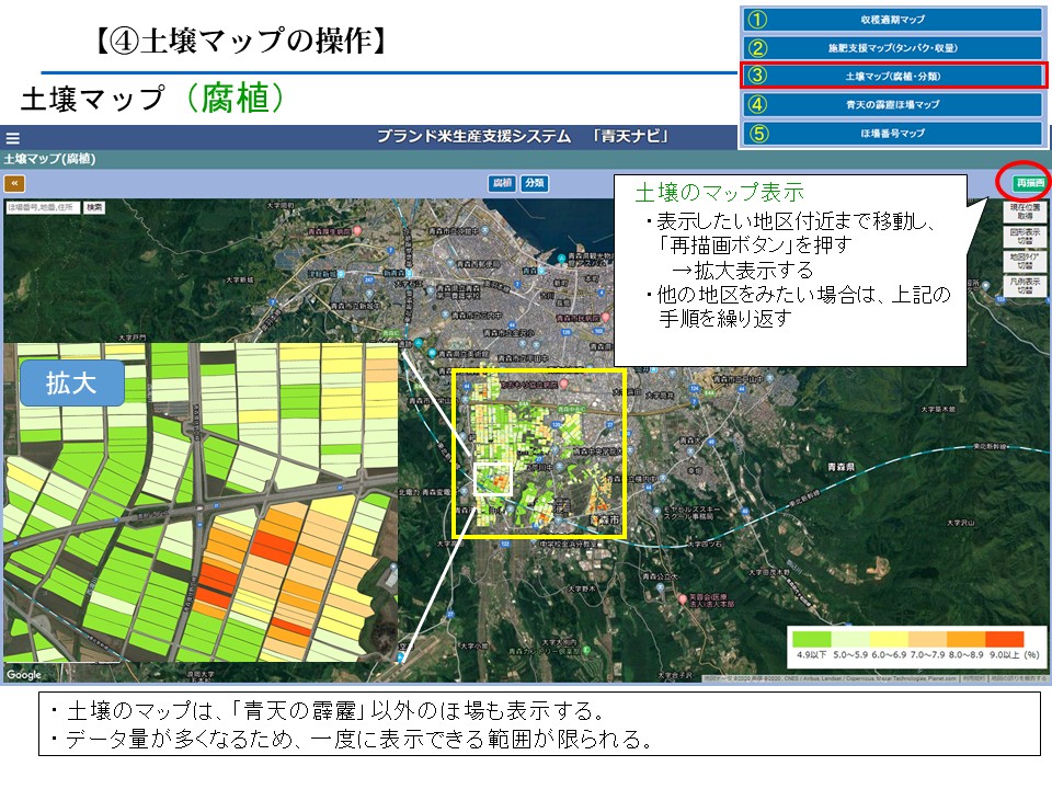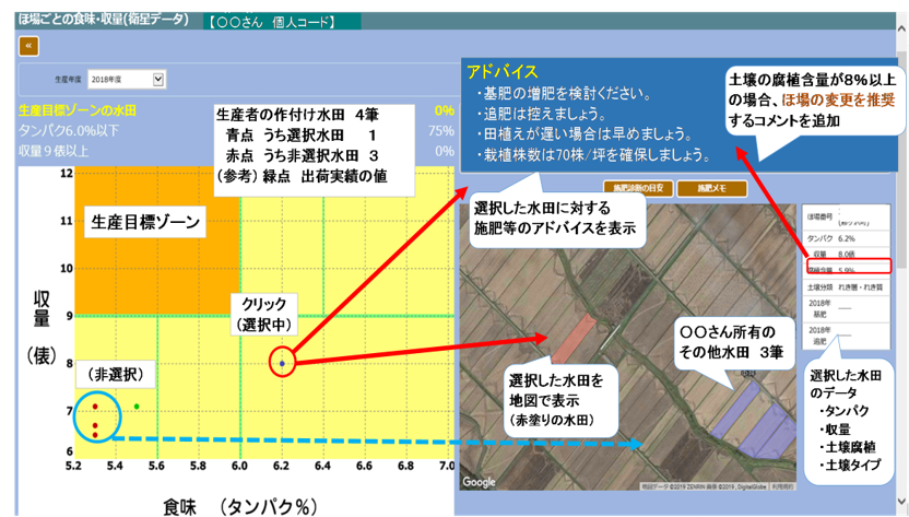 【春作業のポイント】*その1*老化苗の防止 ◇種まきは田植日から逆算して、計画的に。 ◇育苗期間の温度、水管理を徹底して、伸びすぎを防ごう! *その2*栽植株数70株/坪を確保 ◇気温が高い日が続くと、「ガス湧きによる根痛み」などで茎数が不足しやすいので、株数をしっかり確保しよう。 *その3*「青天ナビ」の機能を使いこなそう! ◇ほ場選びに便利な「腐植マップ」、田んぼ1枚ごとの土壌条件や施肥アドバイスが出る「施肥診断」機能を活用しよう! |