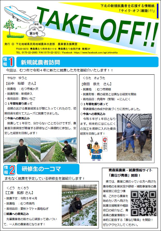 下北管内の新規就農者の「今」を発信する情報紙が「TAKE-OFF !!」(離陸)。