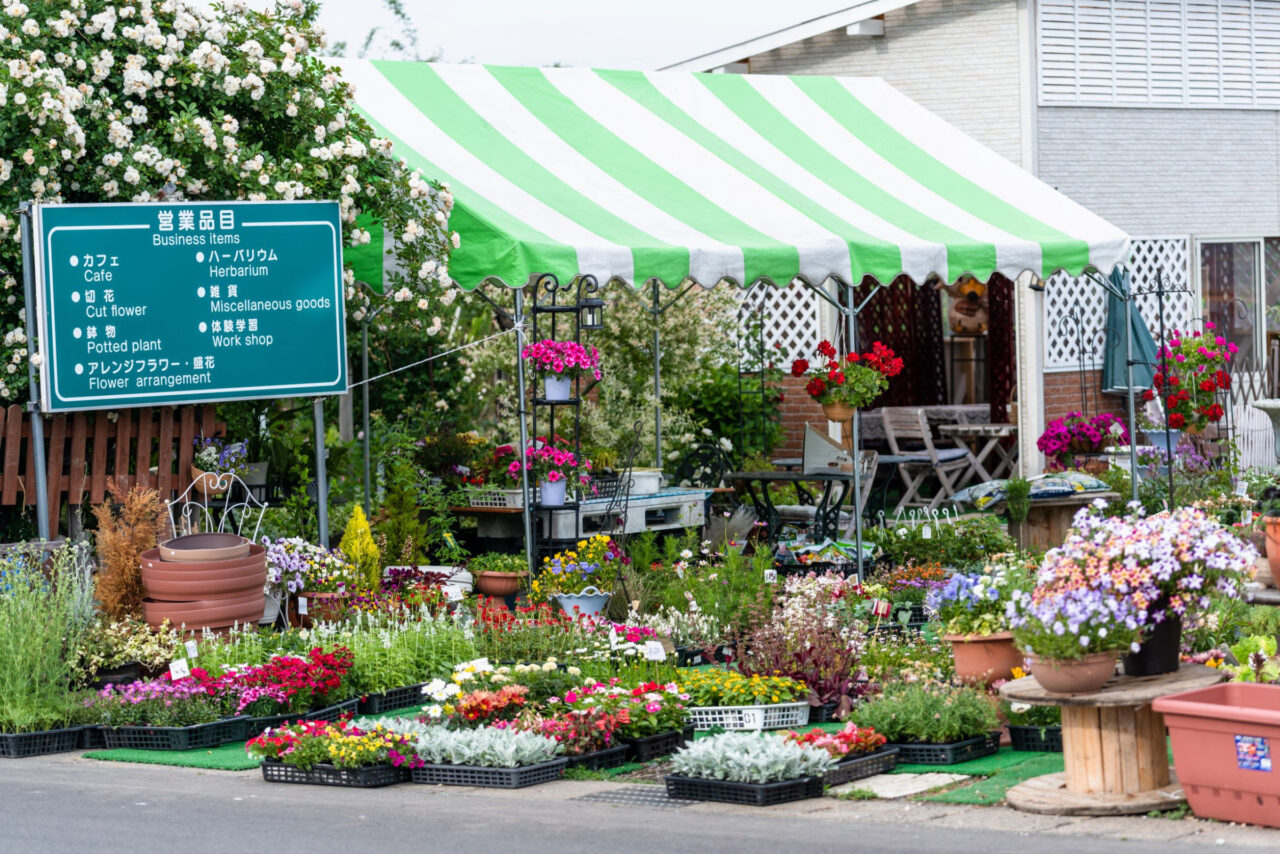 季節の花々を眺めながら、お花屋さんならではの色鮮やかな景色をお楽しみ下さい。